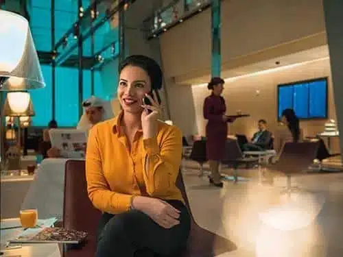 Unwind at the Al Maha Services Lounges with shower facilities, perfect for refreshing during transit. Enjoy international dining, deli-style bites, Wi-Fi, beverages, and a relaxing atmosphere before your onward flight.