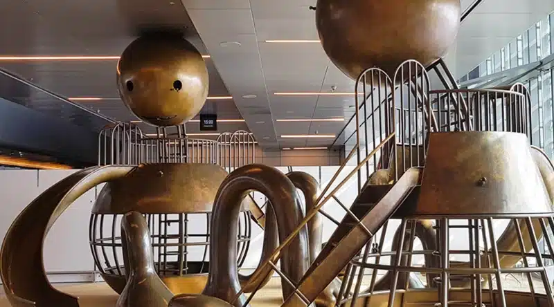 HIA isn’t just an airport—it’s also an art gallery! With more than 30 unique installations, you’ll find art pieces scattered throughout, turning every corner into a visual treat. Don’t miss the iconic ‘Lamp Bear’ by Urs Fischer, the mesmerizing ‘COSMOS’ by Jean-Michel Othoniel, and Ahmed Al Bahrani’s ‘A Message of Peace to the World.’ These exhibits create a one-of-a-kind cultural experience for travelers.